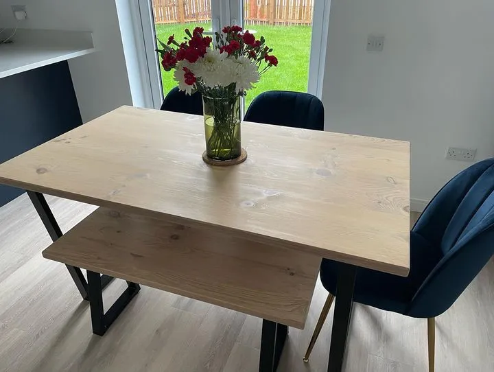 The clear flat matte oil is perfect at providing great durability for the tabletop whilst maintaining the natural wood, avoiding a high gloss finish.