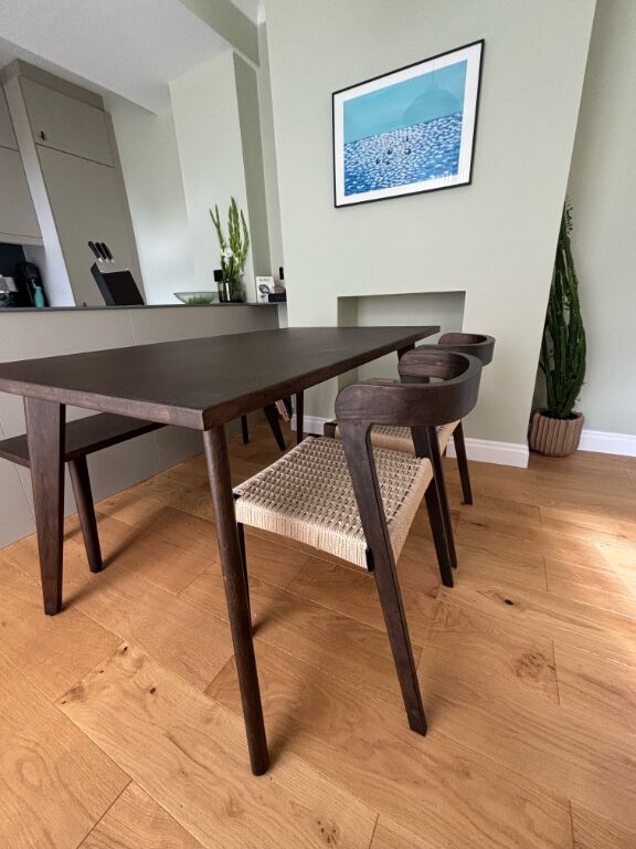 With its natural wooden frame and smooth tabletop, this piece brings a touch of the Nordic aesthetic to your dining room.