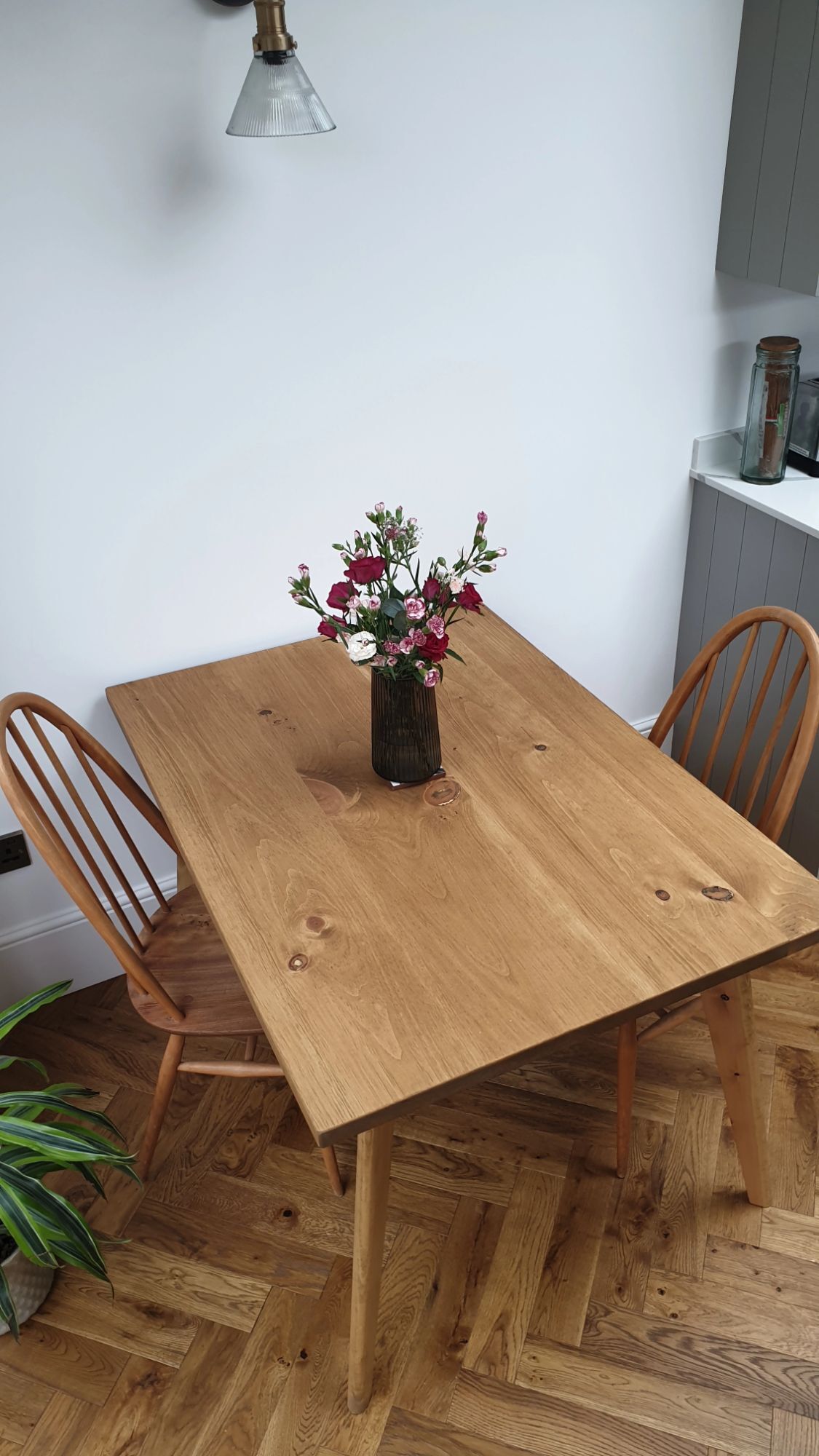 The clear flat matte oil is perfect at providing great durability for the tabletop whilst maintaining the natural wood, avoiding a high gloss finish.