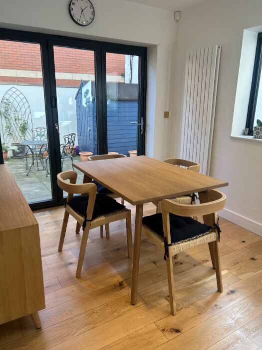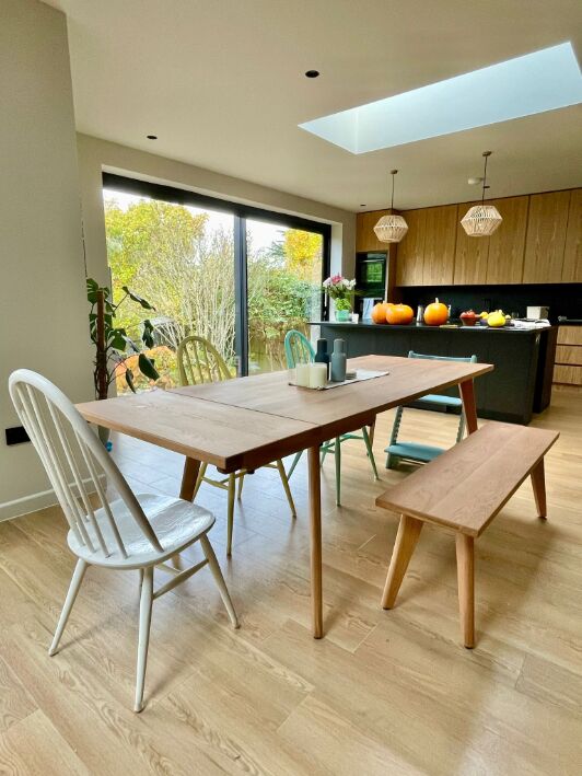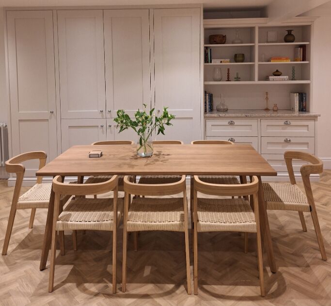 Create the perfect dining space with our customisable Extendable Light Oak Scandinavian Dining Set – 01 from Grain & Frame. This stunning collection combines the timeless beauty of solid oak with the flexibility to design a dining area that perfectly suits your space and lifestyle.