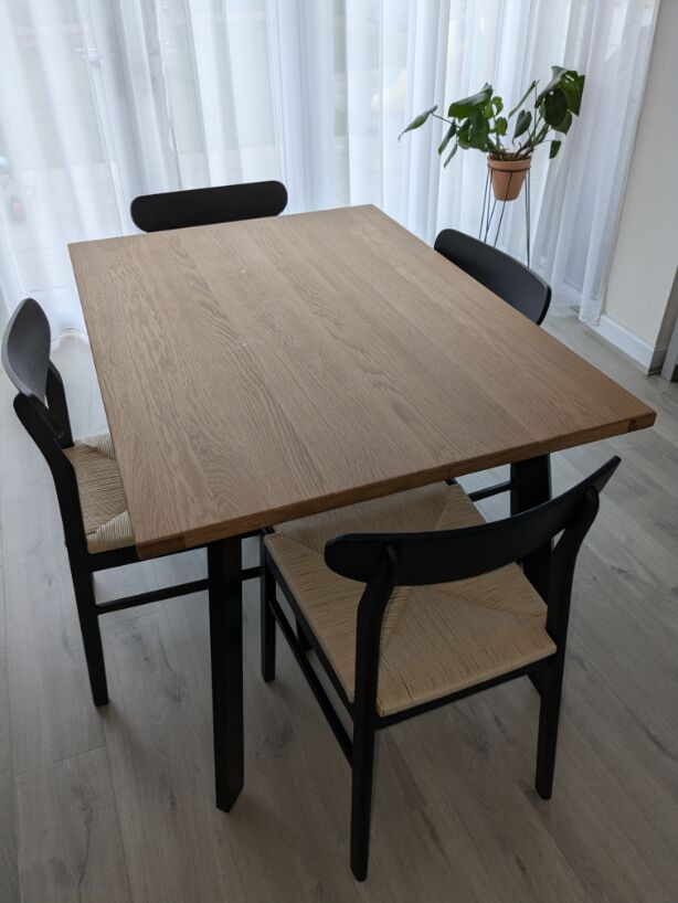 The clear flat matte lacquer is perfect at providing great durability for the tabletop whilst maintaining the natural wood, avoiding a high gloss finish.