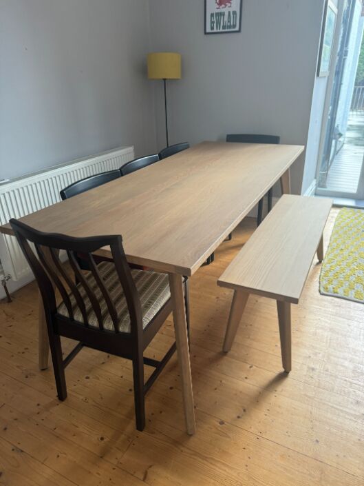 Our oak tables come with our proprietary surface finish. It was initially developed for the hospitality industry where 1000’s of guests sit at the table each day.