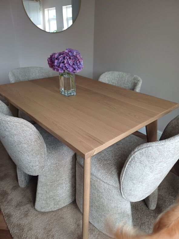 The centrepiece of your dining room, featuring natural wooden legs and a smooth tabletop with a Nordic aesthetic.