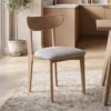 The solid hardwood frame is constructed from Oak, which has a beautiful grain pattern and is joined using traditional woodworking techniques. The seat features a premium linen upholstery pad in a warm oatmeal tone, offering superior comfort and durability for daily use.