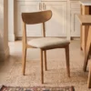 The solid hardwood frame is constructed from Oak, which has a beautiful grain pattern and is joined using traditional woodworking techniques. The seat features a premium linen upholstery pad in a warm oatmeal tone, offering superior comfort and durability for daily use.
