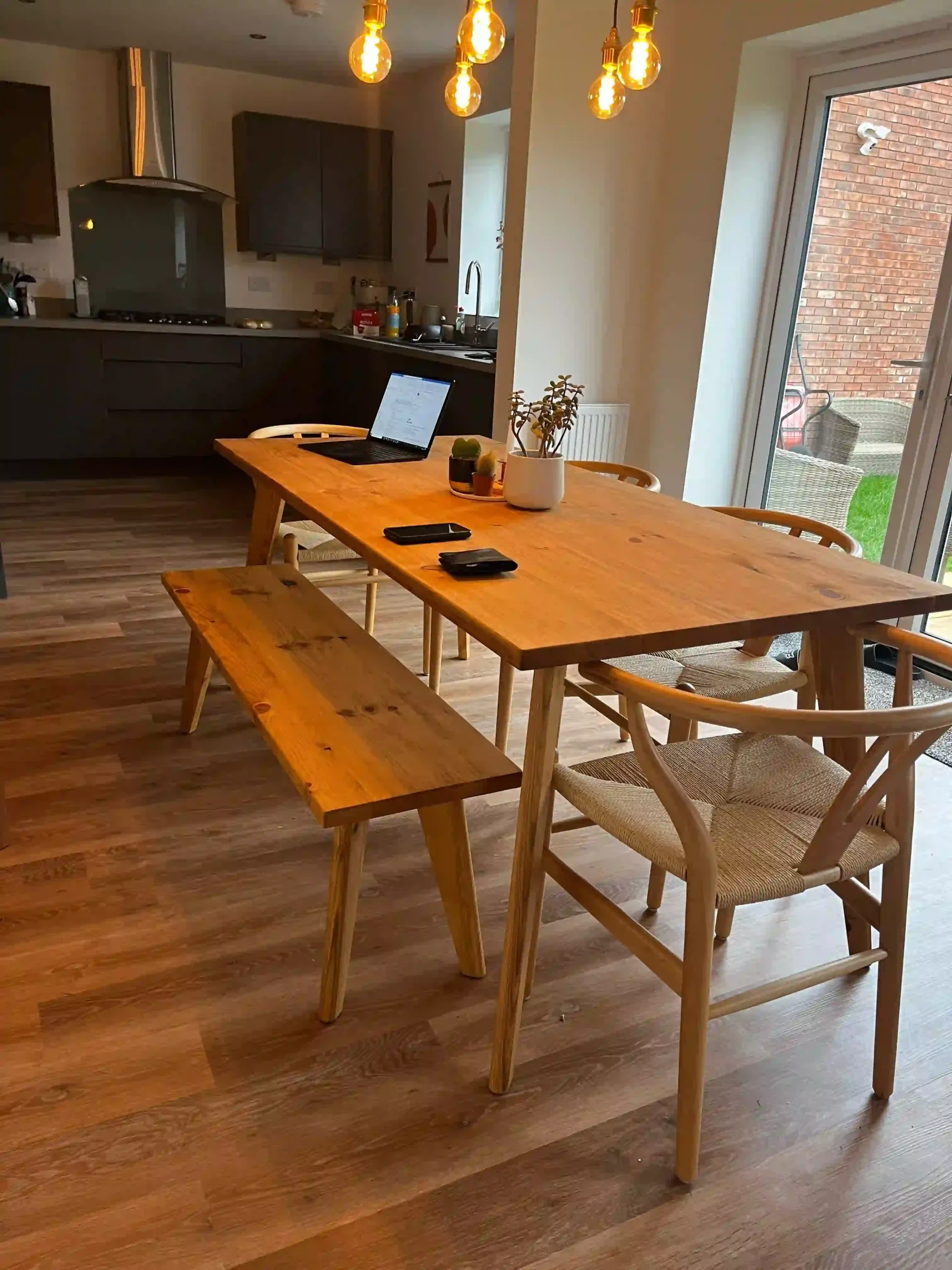 The clear flat matte oil is perfect at providing great durability for the tabletop whilst maintaining the natural wood, avoiding a high gloss finish.